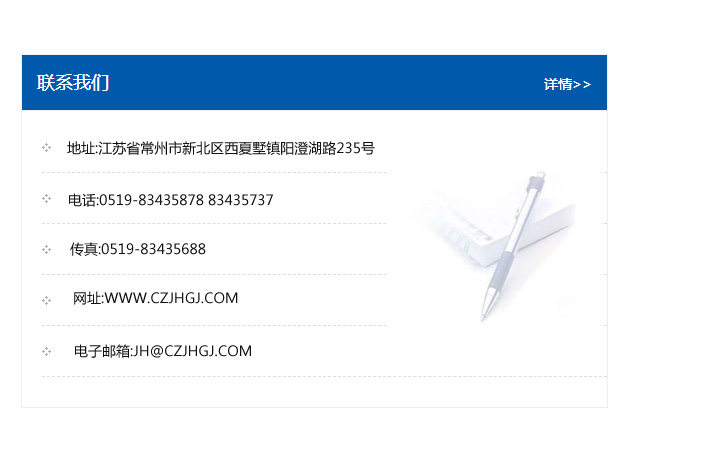 地址:常州市新北區友邦商務大廈1幢16、17層  電話:0519-85101652  傳真:0519-85112595  郵編:213022  網址:www_cz-jiayue_cn.ksxcszgc.com  郵箱:xiajifengaa@163.com